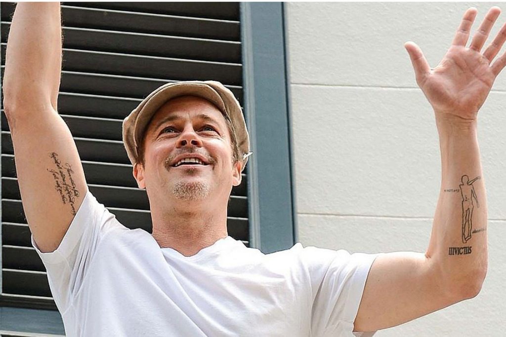Já que se fala em Angelina Jolie, também o seu ex-marido Brad Pitt tem diversas tatuagens, entre as quais a data de nascimento de Angelina. Parece-me que ambos vão ter muitas tatuagens para cobrir… digo eu. Na foto pode ver uma múmia tatuada no braço esquerdo.
