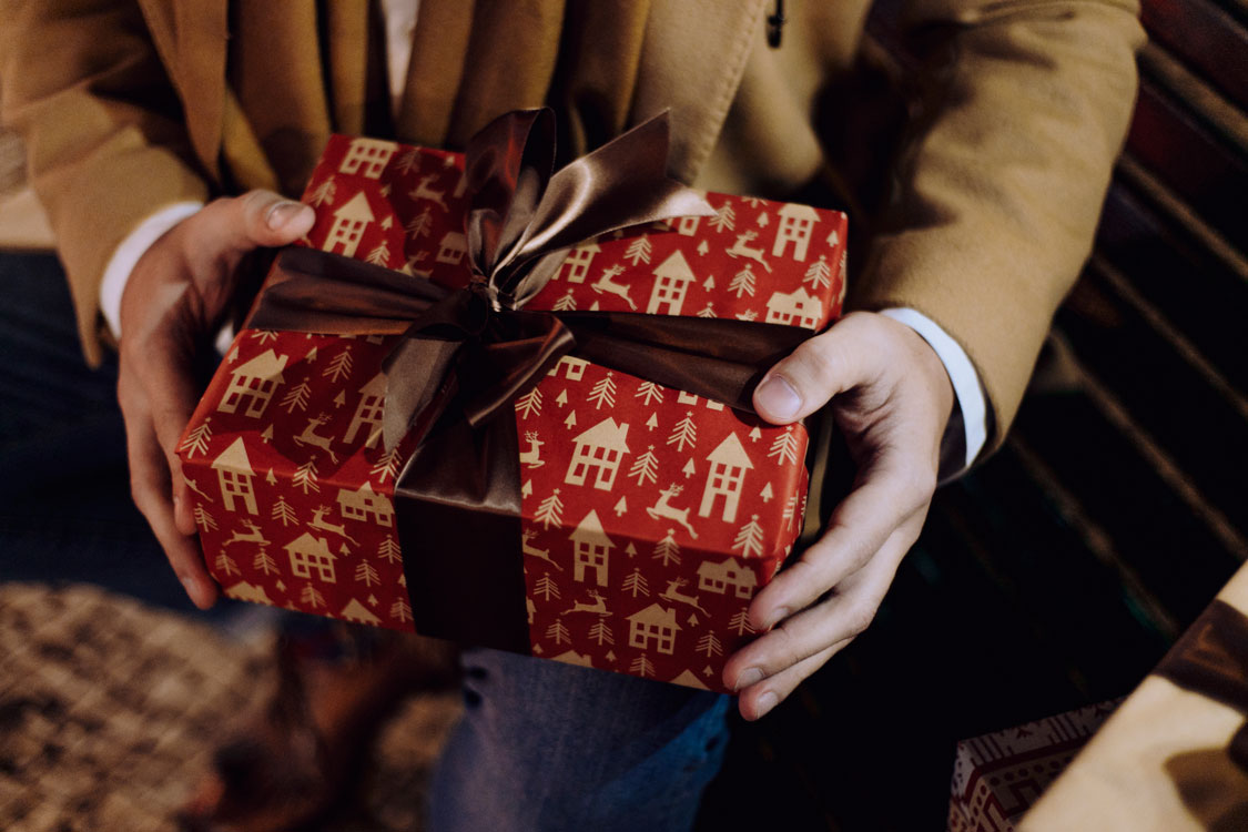 Esta é a dica que sigo mais frequentemente: comprar folhas de tonalidade suave e embrulhar tudo em casa. As minhas cores preferidas são o vermelho sangue de boi e o tom de papelão. No final, gosto sempre de colocar um laço de cetim. Dá um toque ainda mais sofisticado ao presente.
