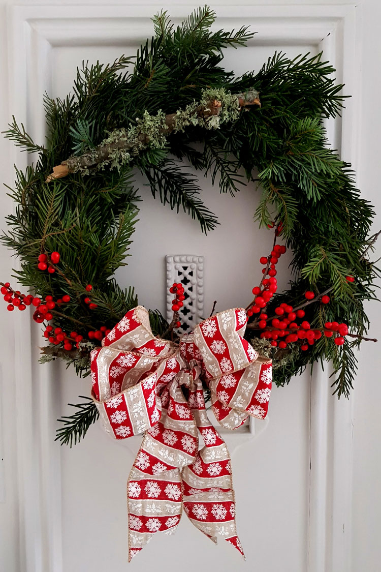 A minha grinalda de Natal é natural e foi feita com o coração
