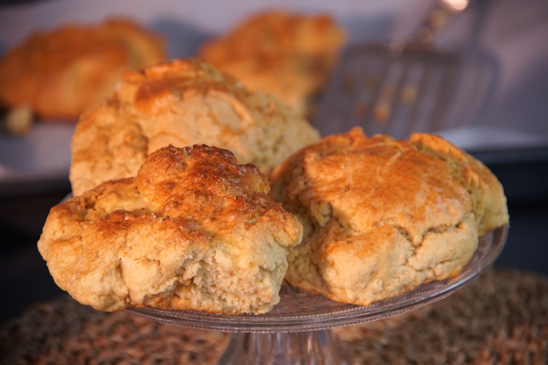 Por fim, acompanhe os scones quentes com manteiga ou doces variados.