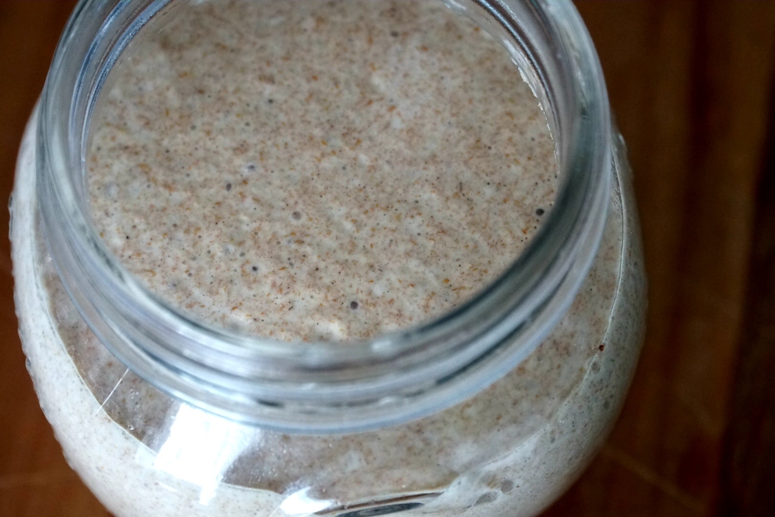 24 horas depois, misture 60 gr de farinha e 60 gr de água. Misture bem e tape.