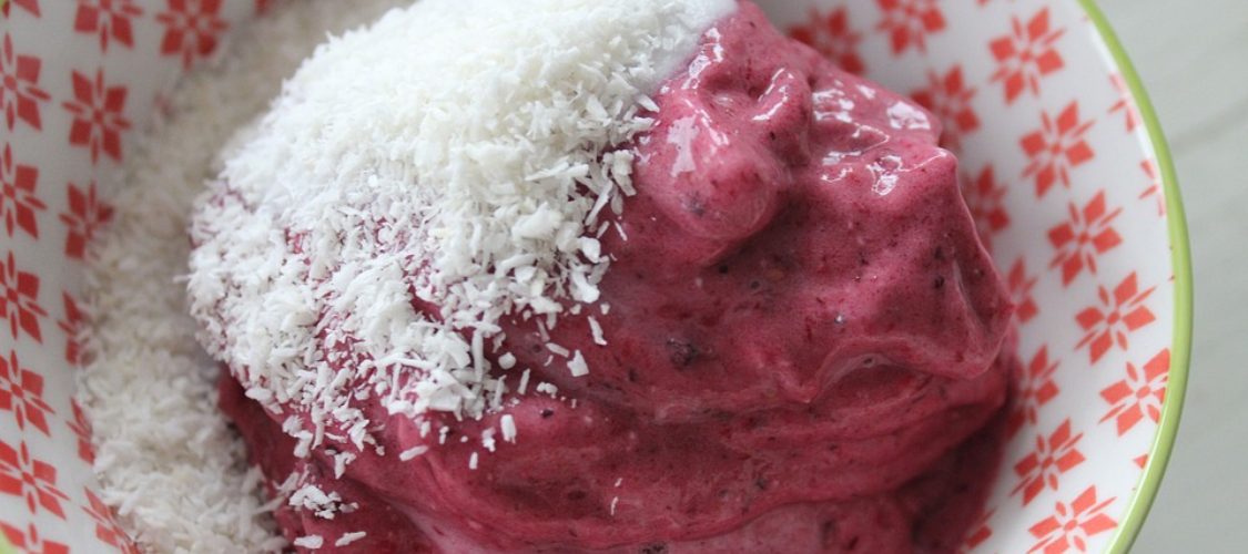 Os frutos vermelhos só têm qualidades! Para além de serem uma autêntica bomba de nutrientes, contam com uma característica que tanto admiro nos alimentos: a sua versatilidade! Se é como eu, e adora soltar a sua veia criativa em plena cozinha, fique a saber que isso é bem possível através dos frutos vermelhos. Afinal, estes ingredientes – que ainda são altamente saborosos – tanto se transformam nos protagonistas de uma bela mousse, como são as grandes estrelas de um batido… Enfim, tudo coisas que sabe tão bem saborear em pleno verão… como este gelado de frutos vermelhos e iogurte grego, que tem ainda um toque especial… e tropical!